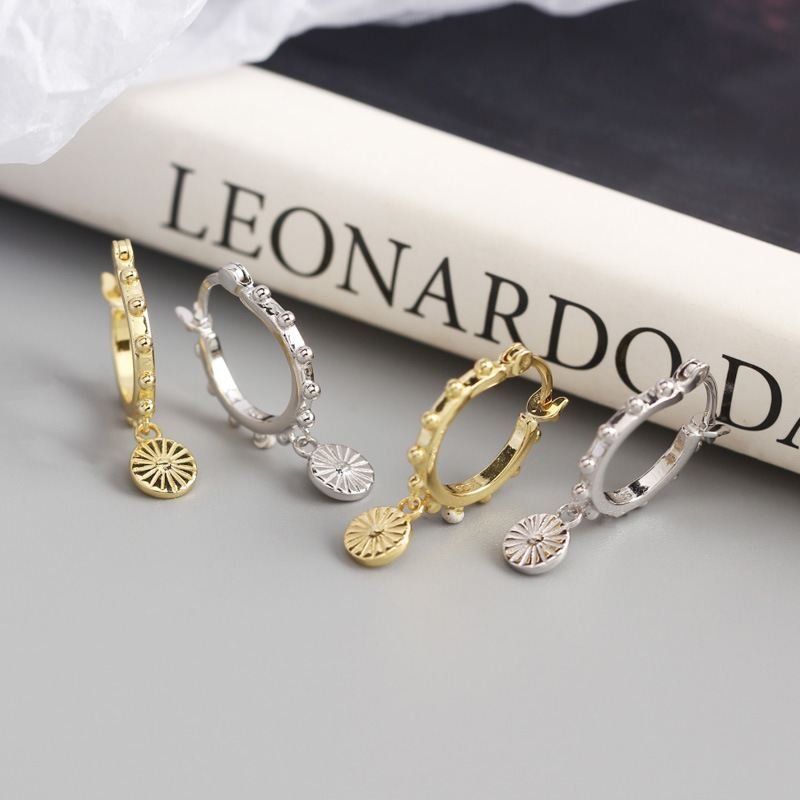 Beads Round Tag 925 Sterling Silver Hoop Earrings