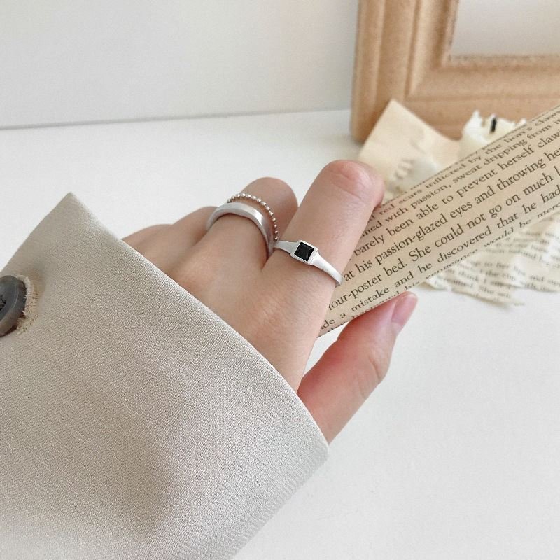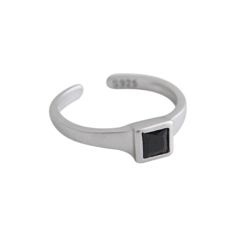 Black CZ Square 925 Sterling Silver Adjustable Ring