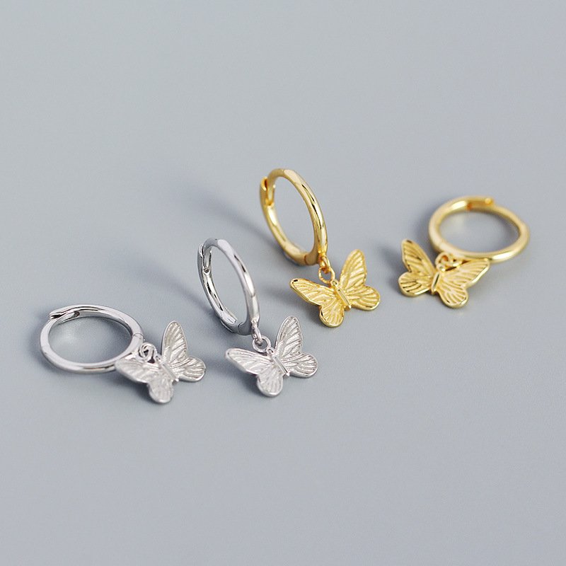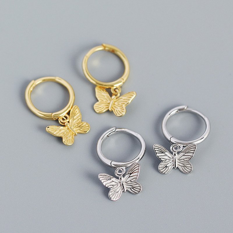Butterdly Flying CZ Butterfy 925 Sterling Silver Hoop Earrings