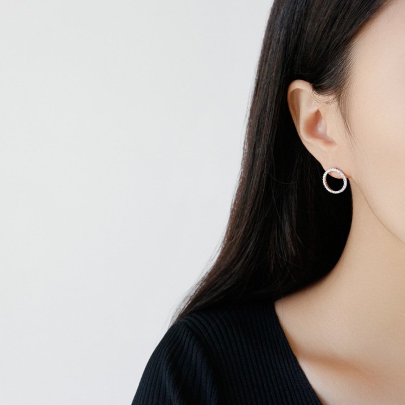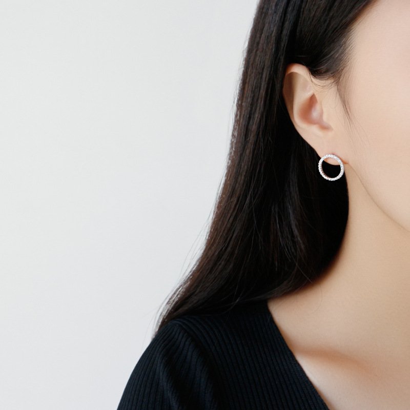 Classic Geometric Hollow CZ Circle 925 Sterling Silver Stud Earrings