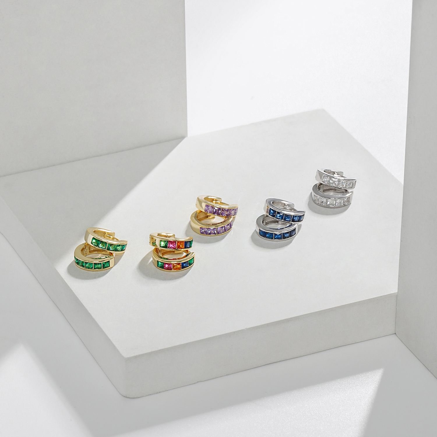 Geometric Colourful CZ 925 Sterling Silver Hoop Earrings