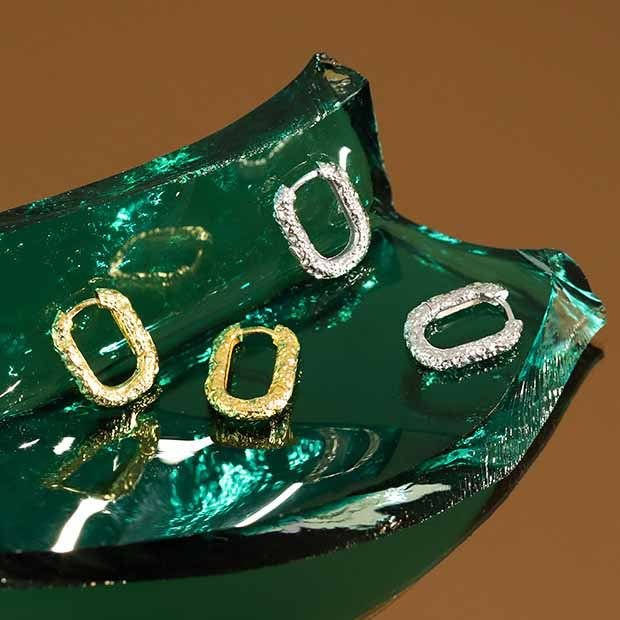 Geometric Hollow Oval 925 Sterling Silver Hoop Earrings