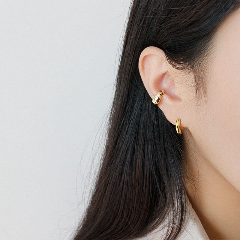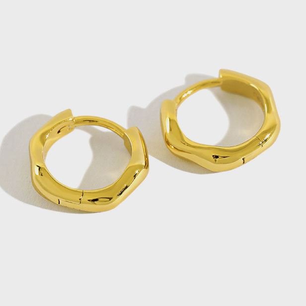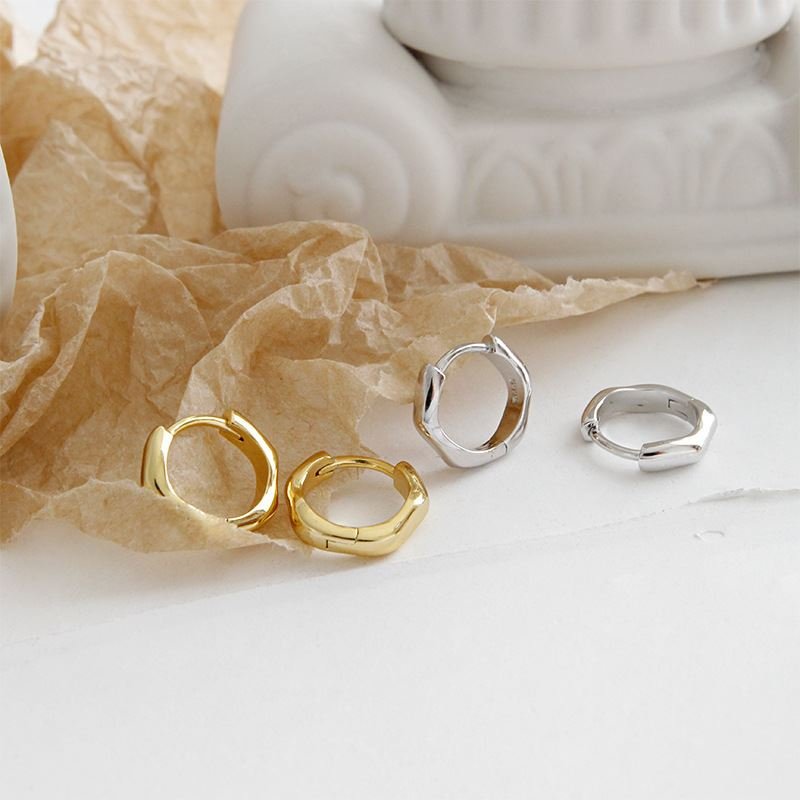 Geometric Irregular Wave 925 Sterling Silver Huggie Hoop Earrings