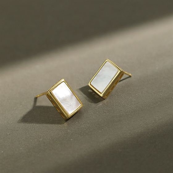 Geometric Rectangle Shell 925 Sterling Silver Stud Earrings