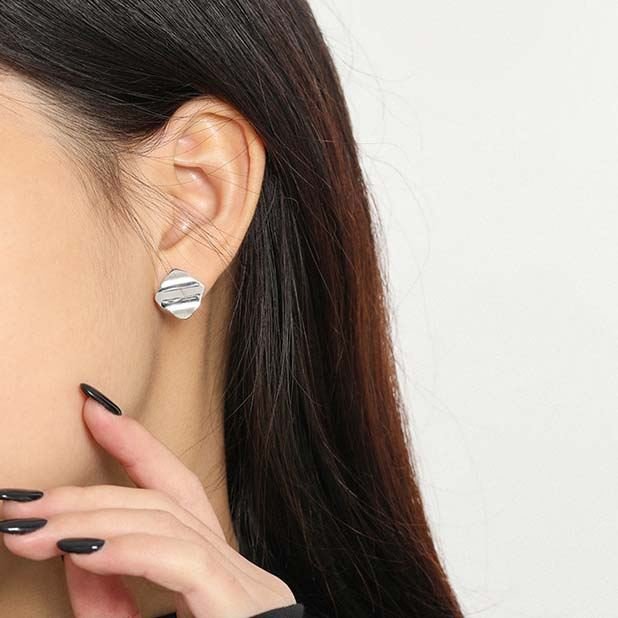Geometric Wave 925 Sterling Silver Stud Earrings