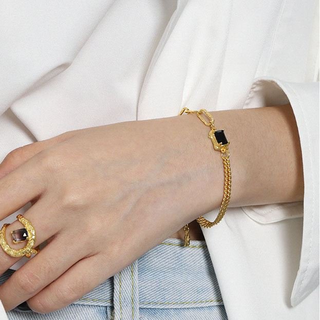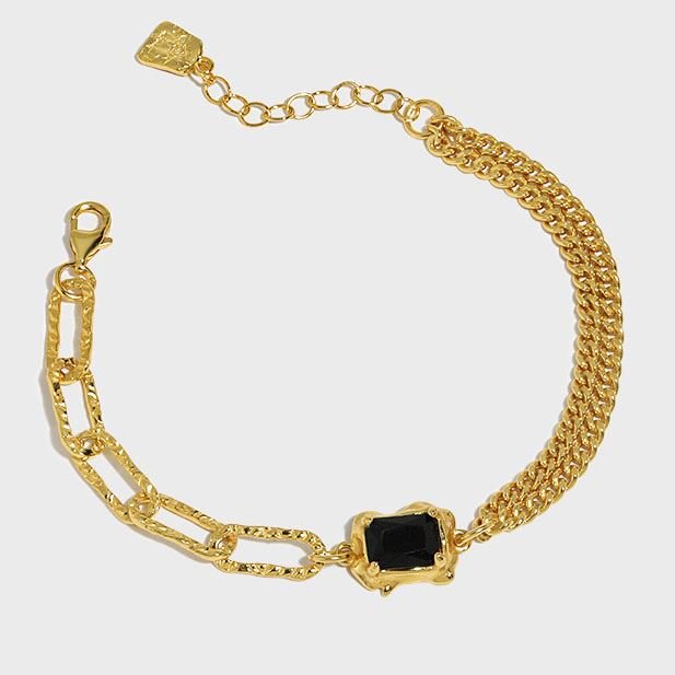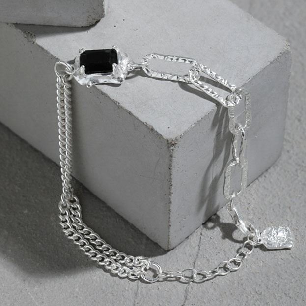 Irregular Geometric Baguette Black CZ 925 Sterling Silver Bracelet
