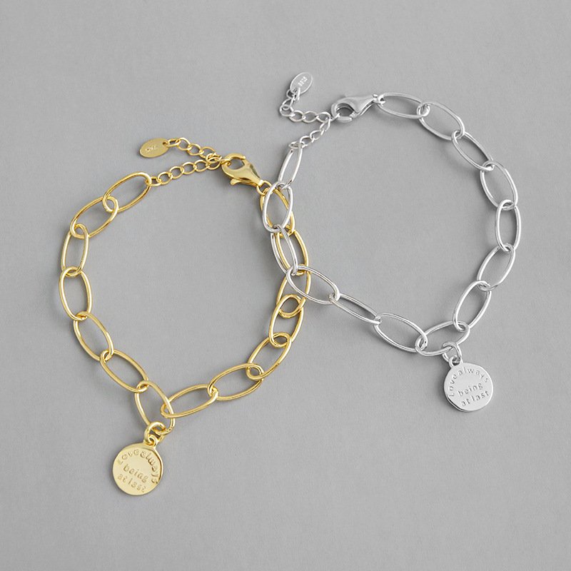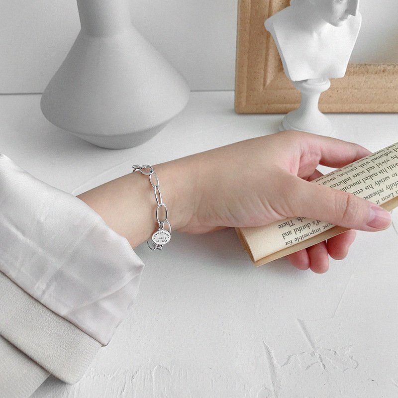 Letters Tag 925 Sterling Silver Hollow Chain Bracelet