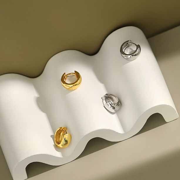 Minimalism Mini Wide Circle 925 Sterling Silver Huggie Hoop Earrings