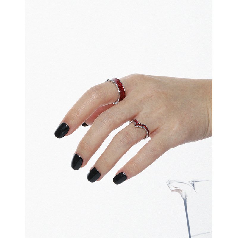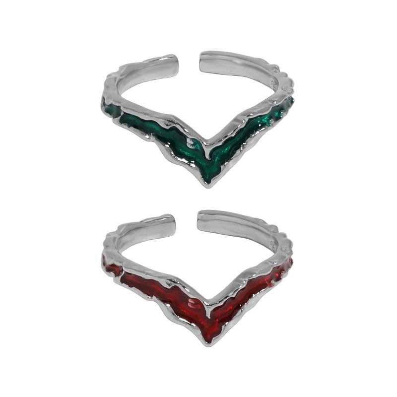 V Shape Epoxy 925 Sterling Silver Adjustable Ring
