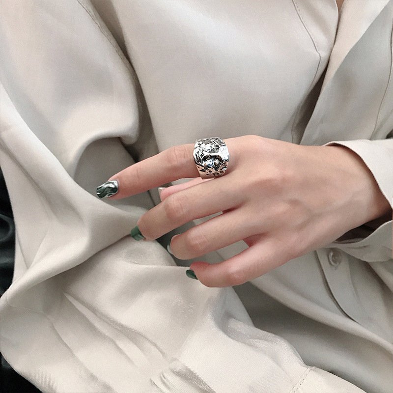 Vintage Abstract Portrait 925 Sterling Silver Adjustable Ring