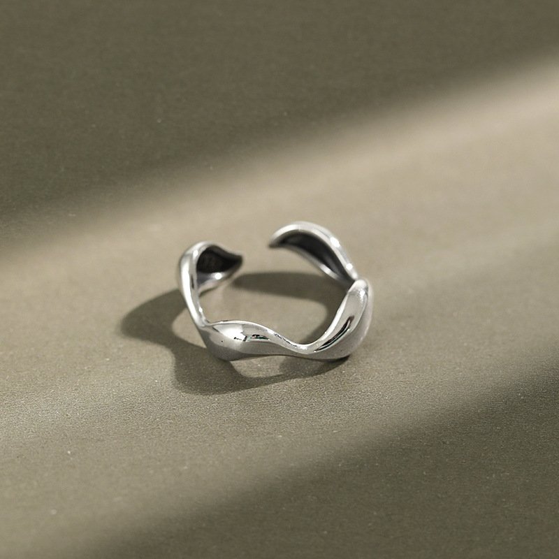 Vintage Irregular Wave River 925 Sterling Silver Adjustable Ring
